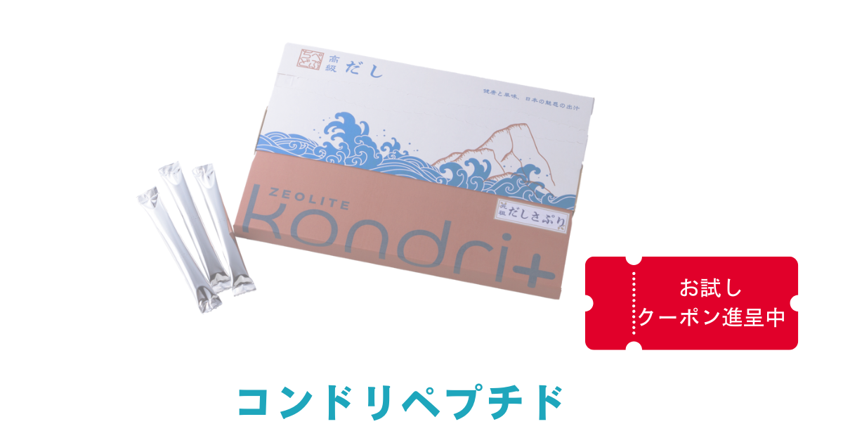 コンドリペプチド(だしサプリ)とは、イワシやカツオなどを丸ごと使用し特殊製法でペプチド粉末にした高級だしのサプリメントです。